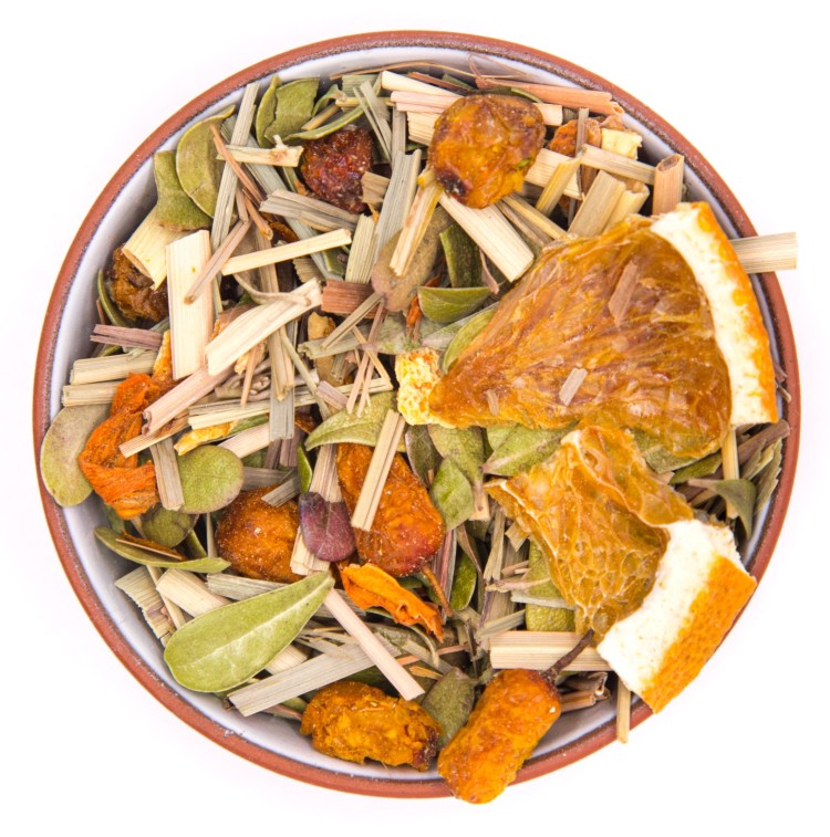 Лемонграсс, толокнянка лист, апельсин цедра, апельсин чипсы, ягоды облепихи, лилия лепестки